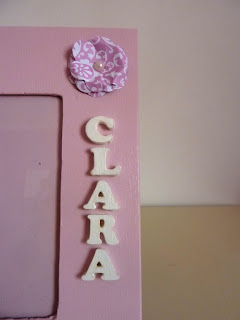 O rosa é a sua cor favorita e como as Princesas crescem e os gostos infantis vão-se perdendo, achei que esta seria a decoração ideal para esta linda moldura - pintada em rosa, decorada em scrap décor com papel scrap em tons rosa e branco com adereços de renda e o nome pintado em branco!