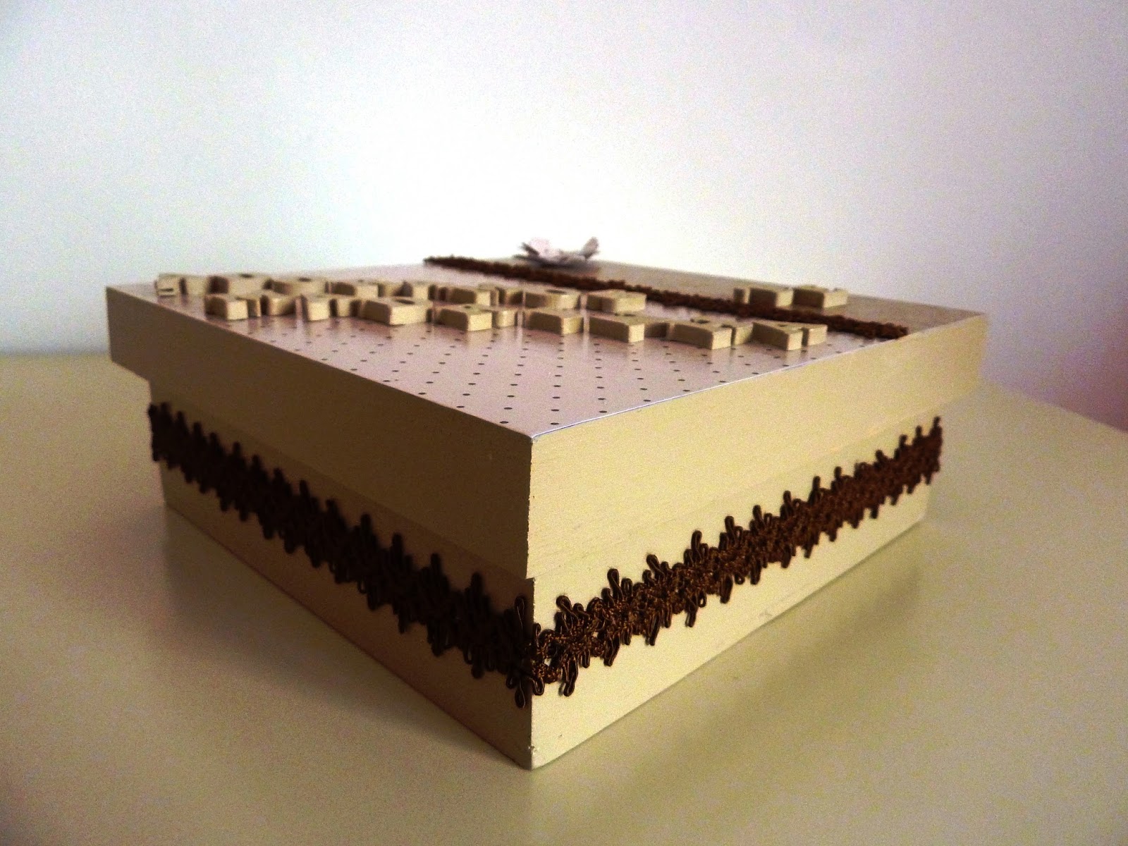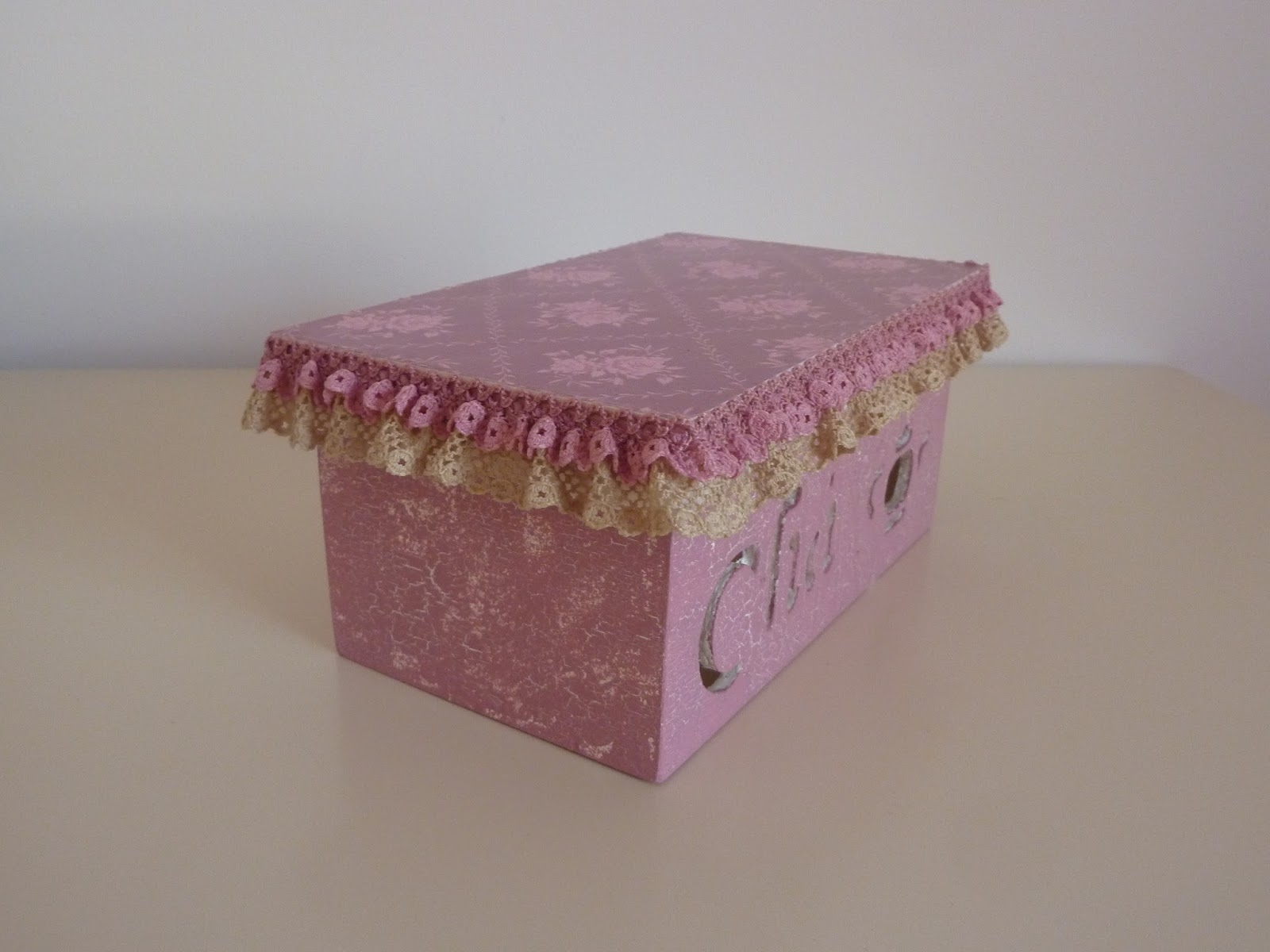 Para iniciar bem a semana, deixo fotos duma linda caixa decorada em tons cinza e creme com aplicação de verniz craquelet para dar um efeito envelhecido!